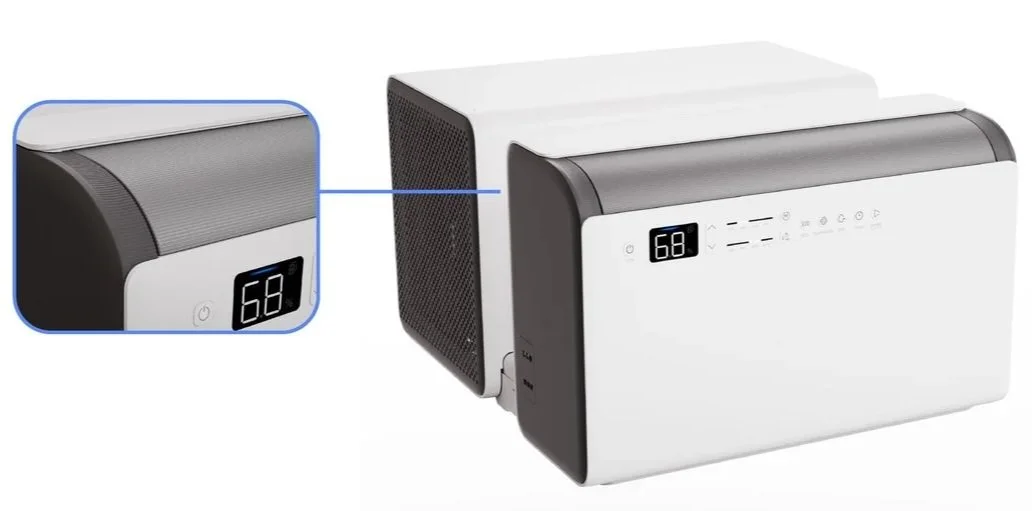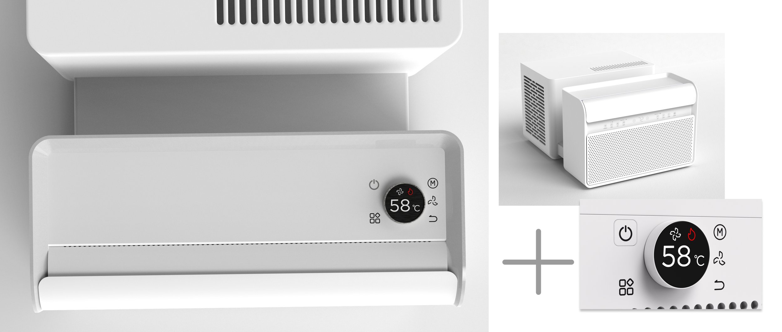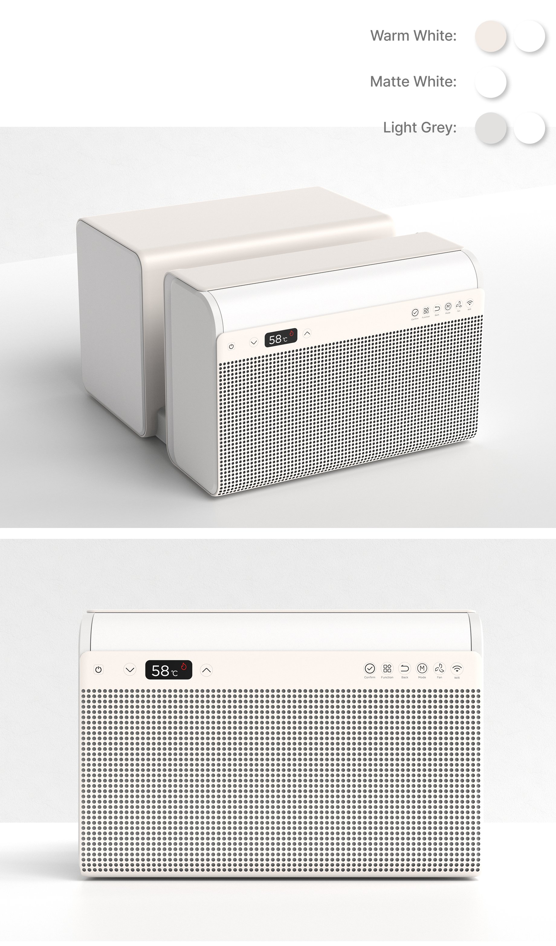 The front grille is an iconic visual cue of traditional window ACs. U2’s unique architecture intakes air from the back, allowing for a minimal, solid front panel that integrates more seamlessly with the interior. Its minimal approach differentiates U2 from conventional window ACs on the market. It enables a cleaner, more premium design language—closer to mini-splits and other heat pump products.