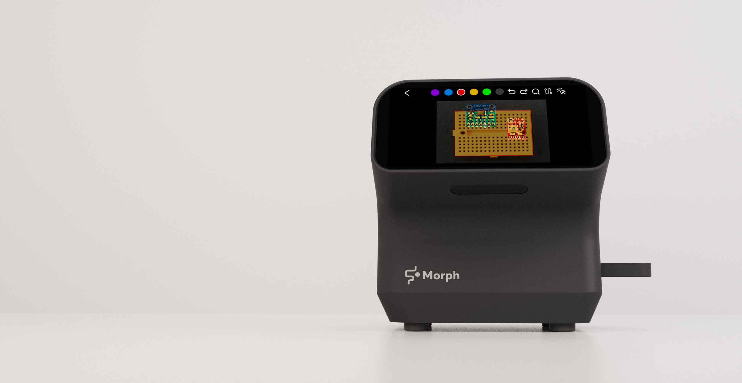 Morph is paired with an extensive component library, allowing users to visualize the circuit layout directly over your breadboard before constructing.