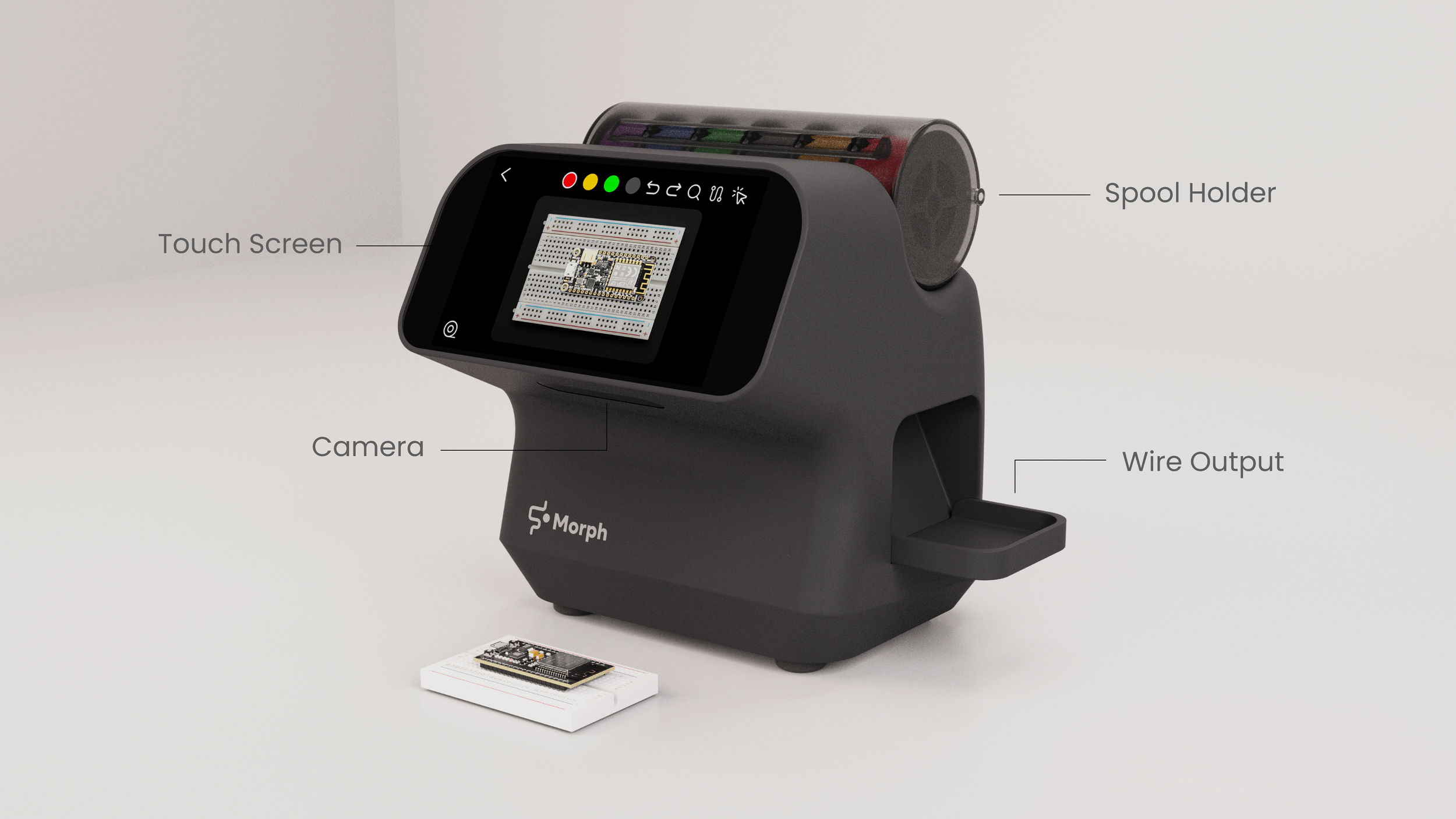 A circuit prototyping assistant that helps build , design, and debug your circuit. With camera vision and automatic wire stripping capabilities, Morph bridges the gap between abstract circuit diagram and functional prototype, making circuit design a fun and intuitive process for beginners and hobbyists. It is an ongoing project.