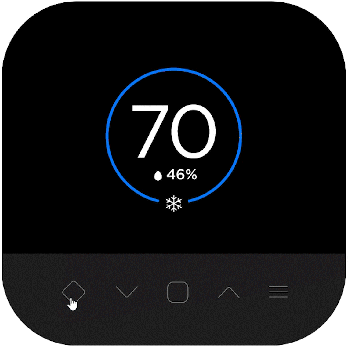 ST1’s home page featured a central circle displaying current temperature, mode, setpoints, and humidity. Tapping the circle brought users to a secondary page to edit setpoints, and exiting required tapping empty space on the screen.