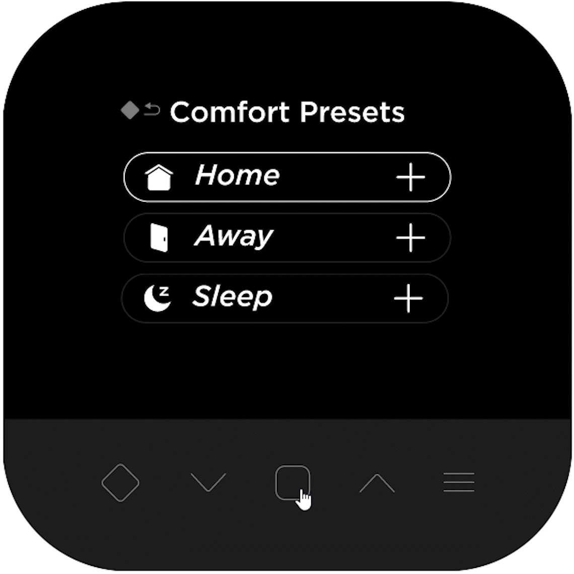 To simplify the experience, I retained ST1’s outline motif and used the dedicated mode button in the toolbar. The mode button cycles through all four modes directly from the home page. Setpoints are viewed or adjusted by pressing confirm and using the up/down arrows in the toolbar.